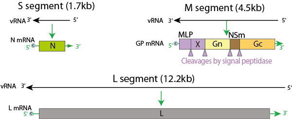 medium (M), and small (S) segments, which are associated with protein