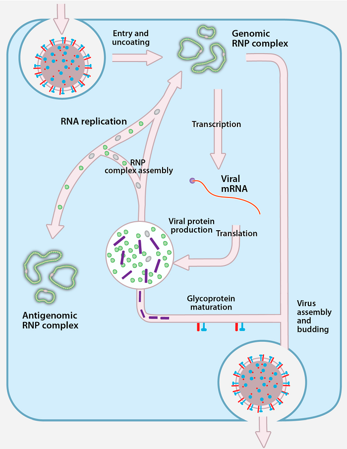 to form nucleocapsids (– RNA–protein complexes).